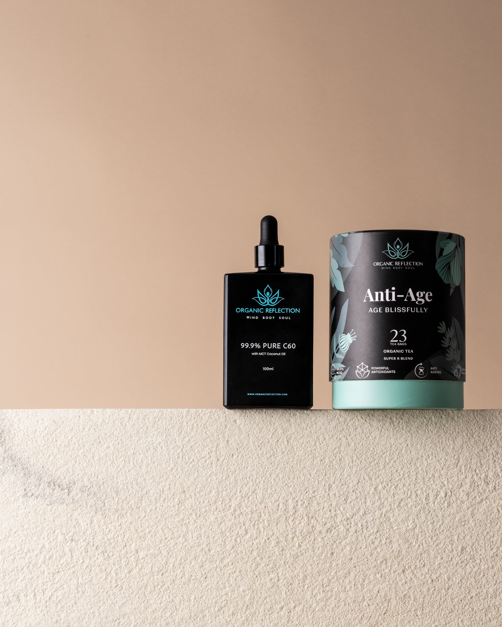 - Organic Reflection Anti-Age Tea: whole leaf tea blend that supports longevity and vitality